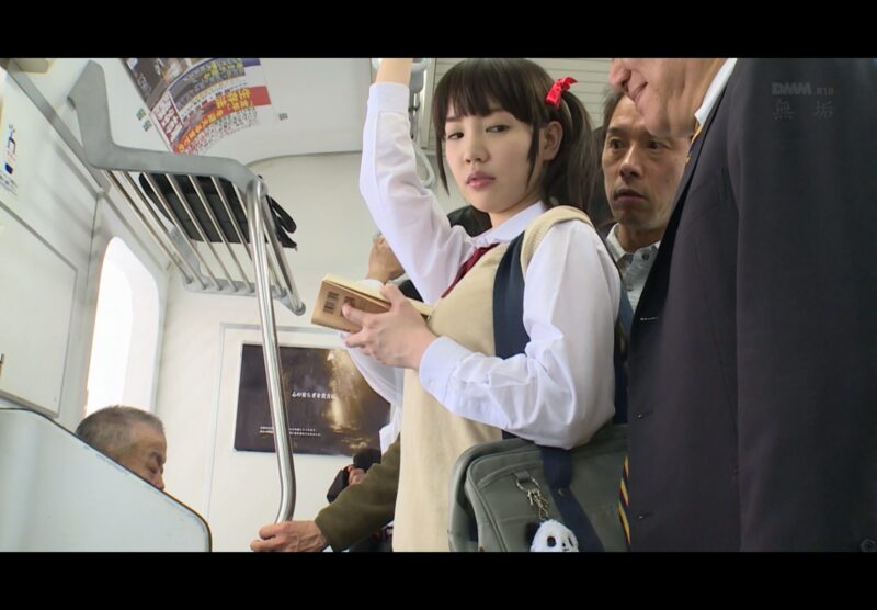 電車内で自分のイチモツをお尻やアソコに押し付けてくる変態オヤジ…